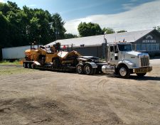 Our June winner is Shaun Hershberger – who hauled a 2014 Etnyre Chip-Spreader with all wheel drive and variable width up to 20 feet with a Roscoe Rubber Tire Roller. He hauled this equipment behind a 2006 Kenworth T-800 powered by a 625 HP Cat engine and a 2015 Etnyre Blackhawk 55 ton trailer. Dimensions on this load were: 10’4″ W x 10’6″ H and weighed in at 80,000 lbs.