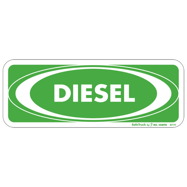Safety is important not only to yourself but those around you. When it comes to safety decals and stickers for trucks, our selection will ensure you have the proper decal posted where needed. This 2.25″ x 6″ DIESEL W/ OVAL decal has a green background and white lettering with an oval printed on premium grade white vinyl and has outstanding durability with excellent UV, temperature, humidity, and salt spray resistance. Die cut for precision, all corners have a 3/8″ radius to reduce lifting and becoming dog eared. Made in the USA. Bigger. Stronger. Safer. Ms. Carita SafeTruck.